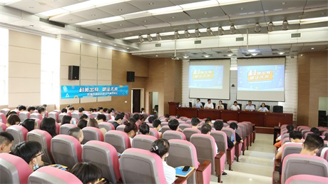 出席会议的有:公司总经理尹萍、副总经理韩君华、人力资源经理江莉及其团队,工商管理学院副院长肖永平,21级市场营销及工商企业管理专业近百名新生。